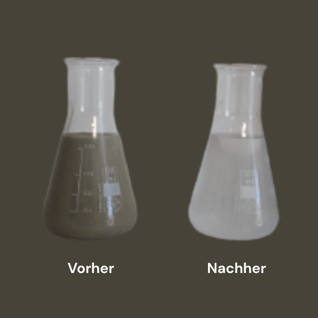 Die Restbestandteile wie z.B. Zement im Wasser reagieren nach und härten aus. Die Filtertücher werden folglich zugesetzt und eine reibungslose Funktion ist nicht mehr garantiert. Um ein Aushärten zu verhindern, wird eine tägliche Reinigung der Filtertücher empfohlen.