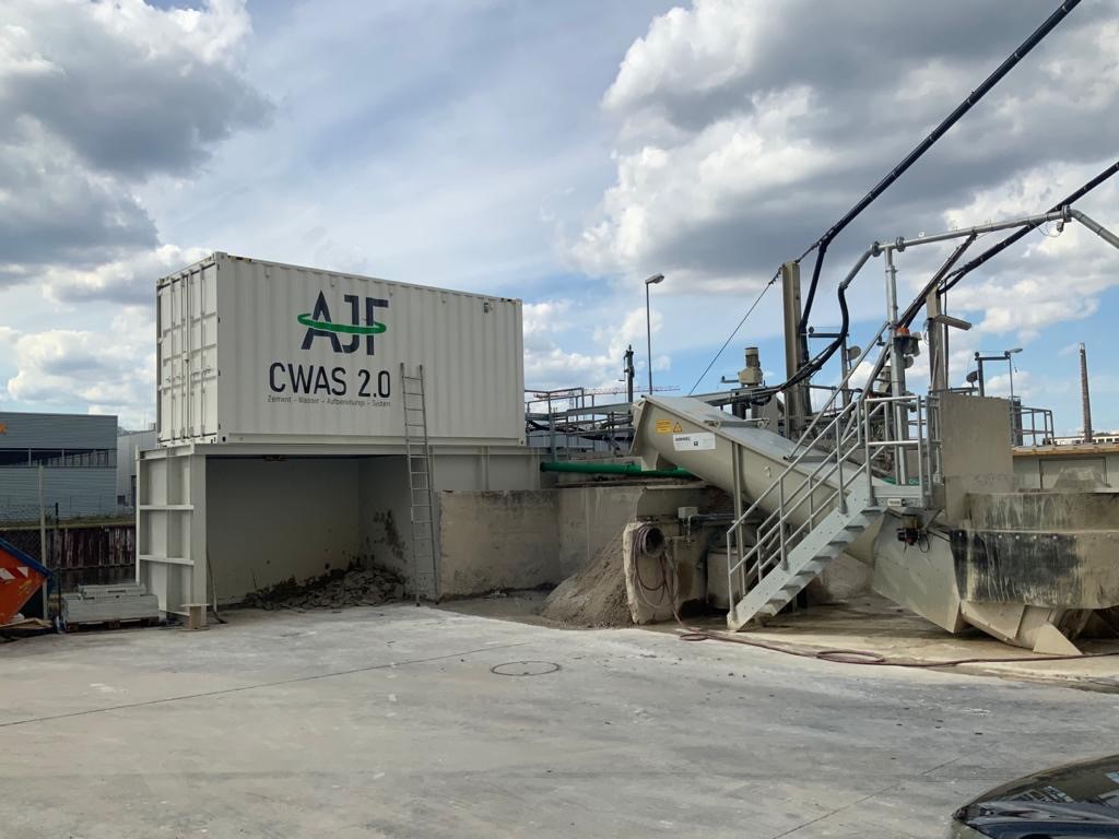 Mindestens einmal täglich ist die Restwasser Dichte in kg/Ltr zum Zeitpunkt der erwarteten höchsten Wasserdichte festzustellen – besser noch fortlaufend, rund um die Uhr. Als mittlere Feststoffdichte gelten 2,1 kg/Ltr, optimaler sind 1.07 kg/Ltr, bei einer Feststoffmasse von 0,134 kg/Ltr und einem Restwasser-Volumen von 0,936 Ltr/Ltr. Für hochfeste Betone oder Luftporenbetone dürfen Sie übrigens kein Beton Recyclingwasser, sondern nur Frischwasser verwenden. Aber wie lässt sich die Anforderung, Restwasser gleichmäßig über die Tagesproduktion zu verteilen, in der Praxis realisieren? Zement-Wasser-Aufbereitungsanlagen wie die CWAS von AJF machen den Job automatisch. Stationär, aber auch mobil einsatzbereit, eignet sich die mobile Recyclingwasser Aufbereitungsanlage auch für kleinere Betonwerke. Anfallendes Betonwasser wird so automatisch aufbereitet – sogar im Winterbetrieb, bei konstant niedriger Restwasser Dichte von z.B. 1,07 kg/Ltr.